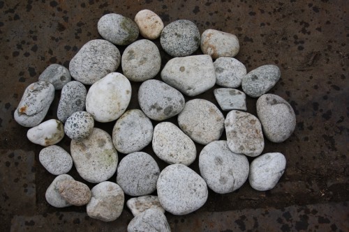 Галька речная плоская (серо-белая)