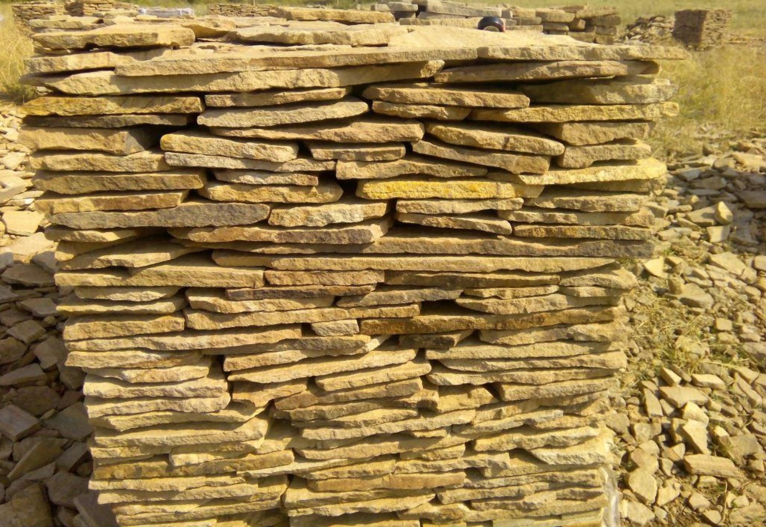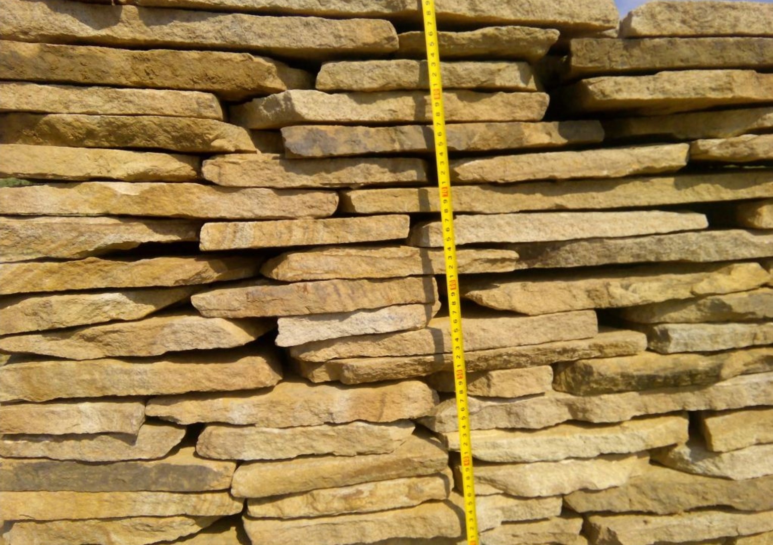 Kamenclub.ru: песчаник пластушка желтый с разводом под дерево (2 см) купить в Волжском - заказать природный камень по низким ценам оптом с доставкой от производителя - kamenclub.ru