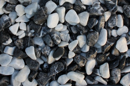 Kamenclub.ru: мраморная крошка (щебень галтованный микс:: белый-черный) фр.5-10 мм купить в Волжском - заказать природный камень по низким ценам оптом с доставкой от производителя - kamenclub.ru